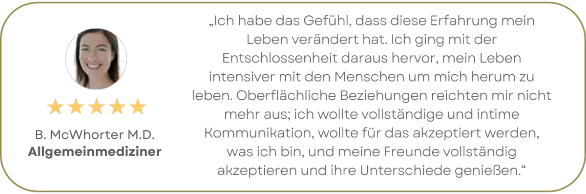 Egal, ob Sie persönliches, spirituelles oder berufliches Wachstum anstreben, unsere bewährten Prinzipien helfen Ihnen dabei, Ihre Kommunikationsfähigkeiten, emotionale Intelligenz und Team Wirksamkeit zu entwickeln... in nur 3 transformative Tagen!